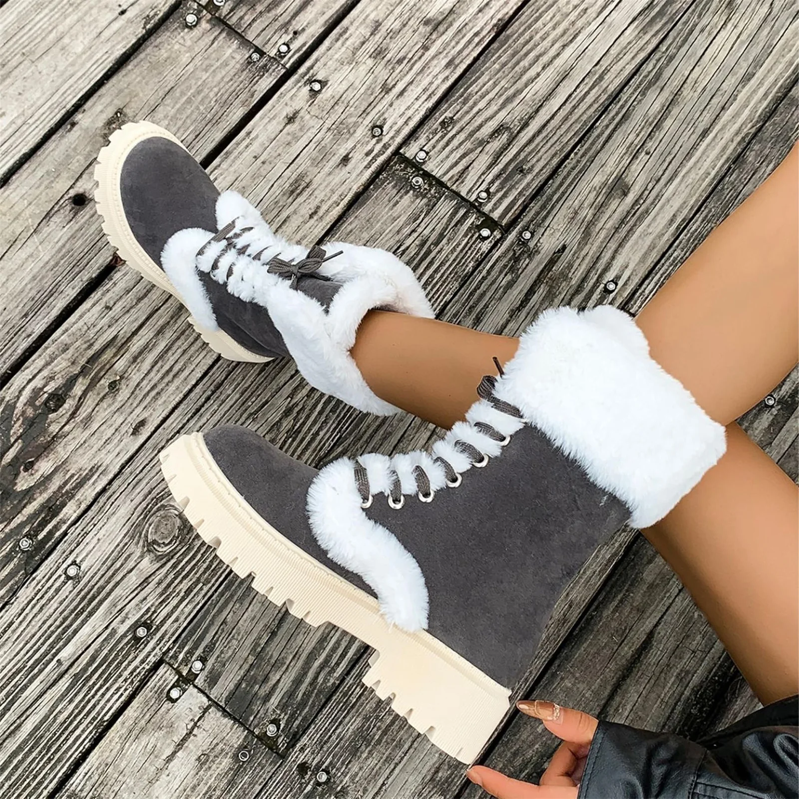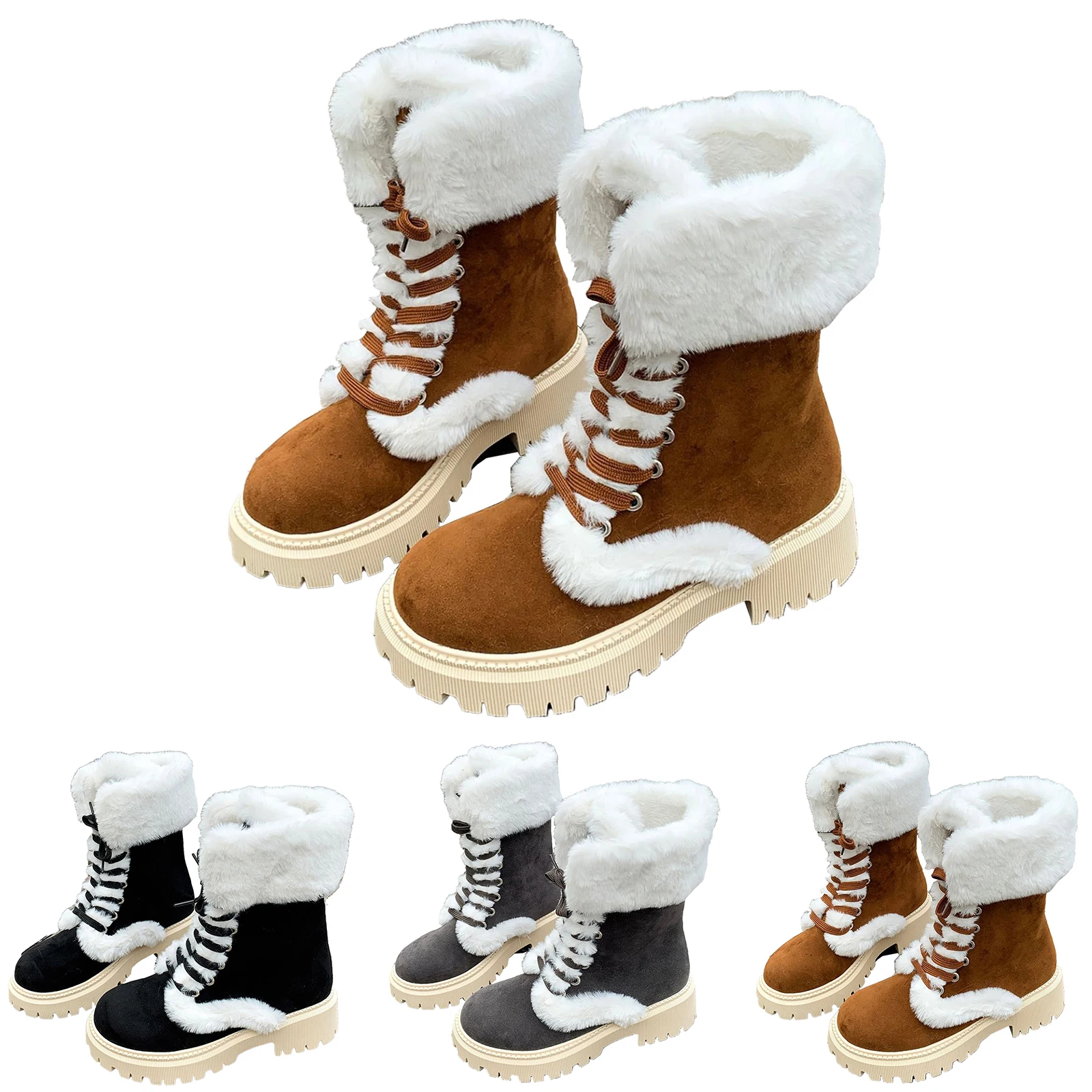 Women’s Fashion Plus Size Warm Round Toe Lace-up Boots